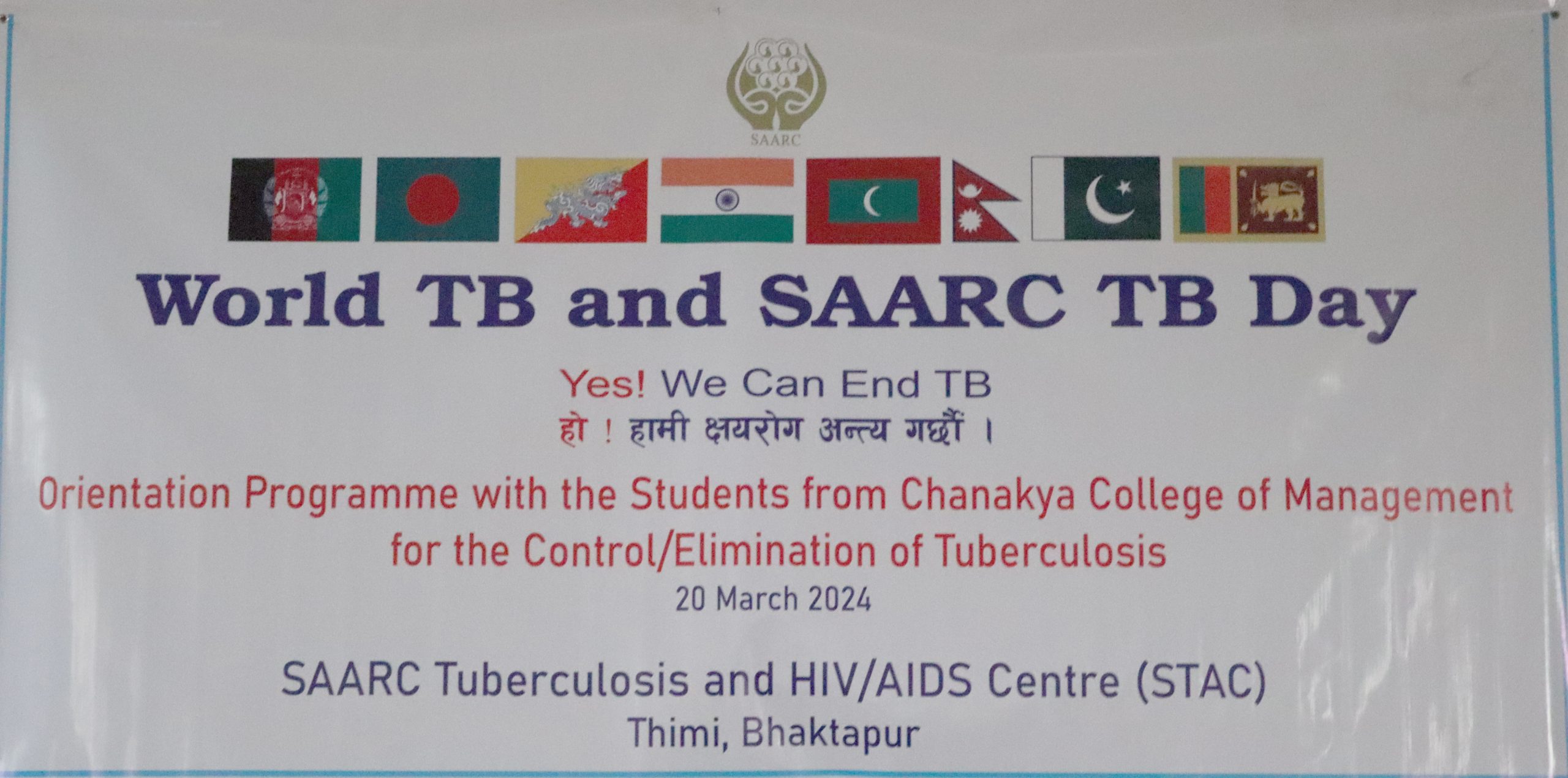 - World TB Day 2016 is commemorated jointly with NTP Nepal at Thimi, Bhaktapur on 24th March 2016 by organizing – Reading Message of H.E. received from SAARC, Exhibition on progress on TB and HIV/AIDS control in SAARC Member States, Display and distribution of Awareness Publications, etc.